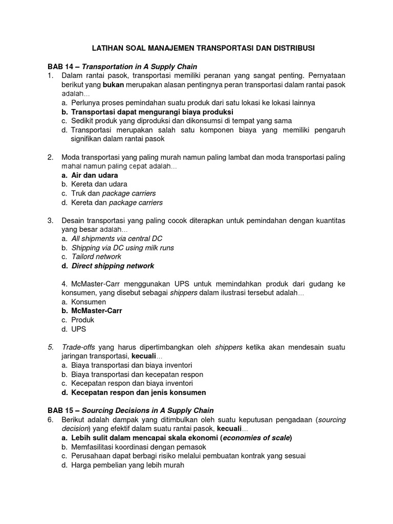 Pertanyaan tentang supply chain management.