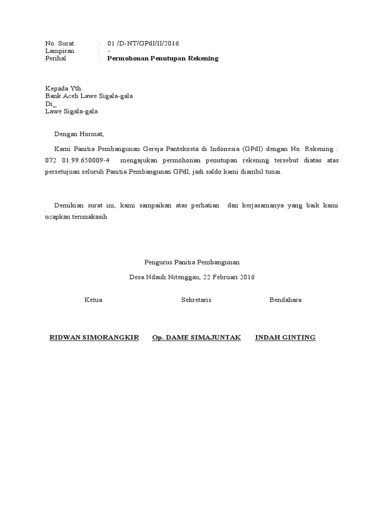 Contoh permohonan pembukaan rekening bank doc document. Contoh surat permohonan penutupan rekening. surat permohonan penutupan rekening docx. Bermacam contoh surat pemberitahuan resmi. Contoh format surat permohonan penutupan rekening bank.